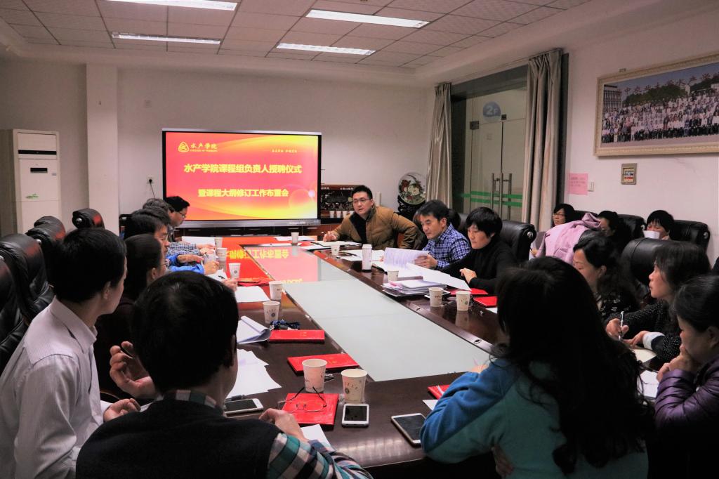 11月28日下午,水产学院课程组负责人受聘仪式暨课程大纲修订工作布置会于水产楼209举行。水产学院党委书记张韶东、华中农业大学教务处教研科科长谢书山、水产学院本科教学督导员罗宇良,系主任及各课程组负责人出席了本次会议。会议由副院长黄丹主持。