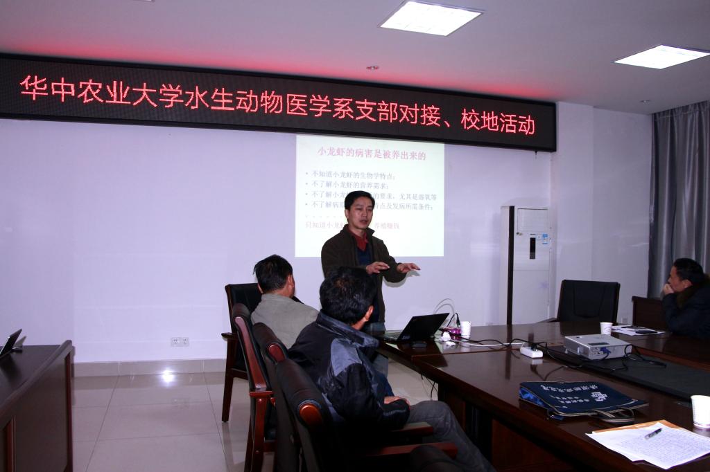 最后,水产学院水生动物医学系教工党支部党员顾泽茂同志给大同湖管理区基层技术人员和渔民作了《小龙虾健康养殖与病害防控》的培训报告。